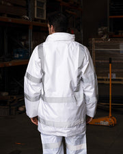 Styled with an H back our white Night Vis Jacket has been designed specifically to keep you comfortable, dry and visible during night works using retroreflective tape in a bio-motion tape configuration. Smart features include a handy phone pocket and large storage pockets, keeping your essentials easily accessible.